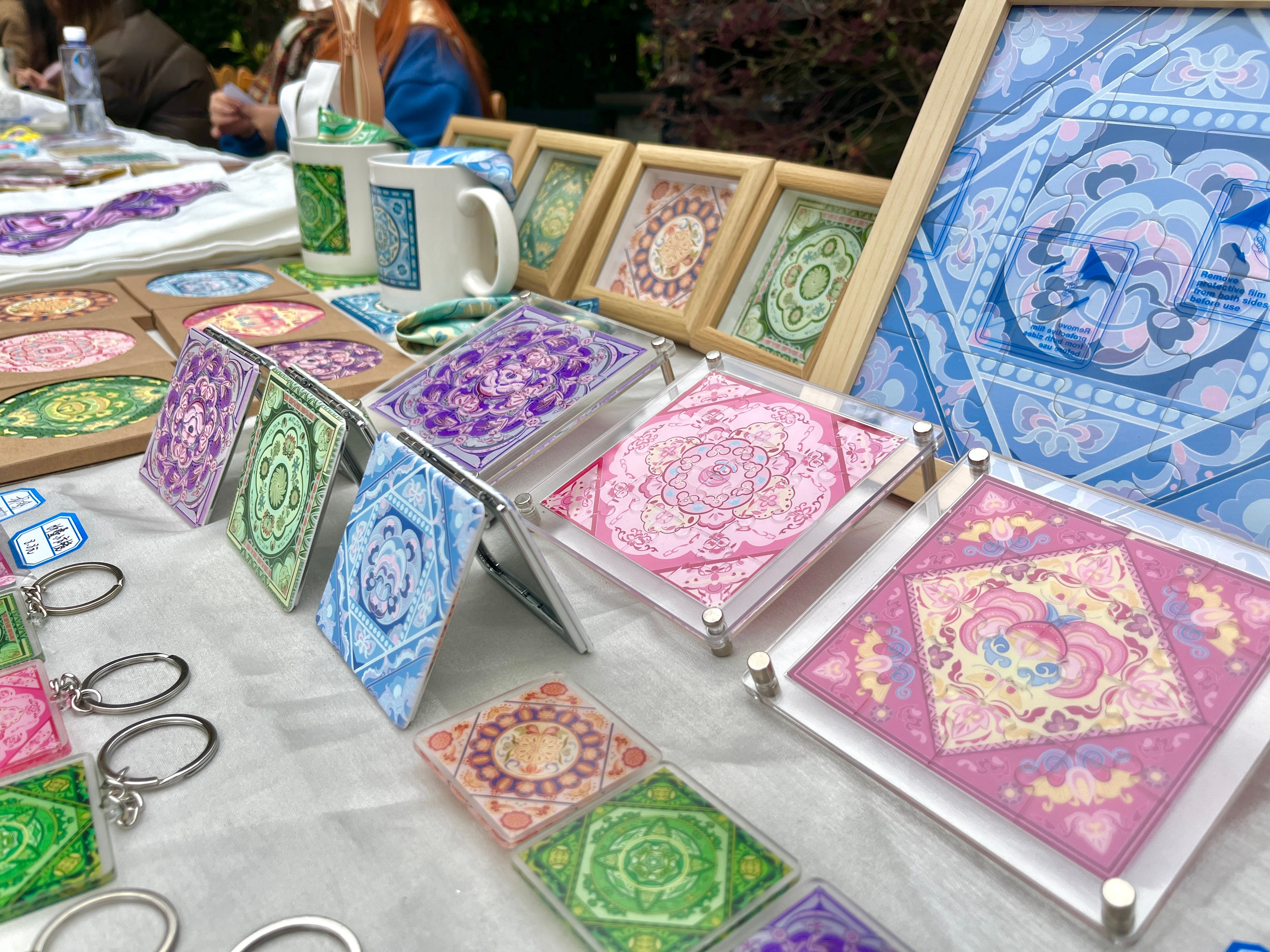 展销活动设有文创展销区、设计共创体验区:在文创展销区,主要展销我校学子对海丝文化创新设计作品,学生们通过拟人化设计将铜凤灯、庑殿顶陶楼、波斯陶壶等珍贵文物化身萌趣文创,让沉睡的文物“活”了起来。其中,融合广西少数民族纹样的设计作品和运用3D打印技术制作的创新产品尤为引人注目。同学们不仅展示作品,更化身文化使者,向游客讲述每件作品背后的历史故事。