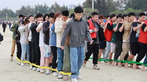 此次沙滩运动会共开设了“巨人脚步”“水到渠成”“袋鼠跳”“同舟共济”“沙滩排球”五大充满趣味的运动项目和“沙雕比赛”,通过特色沙滩比赛项目,培养学生“团结第一、健康第一、参与第一”的体育精神,彰显师生奋力拼搏、蓬勃向上的青春活力。