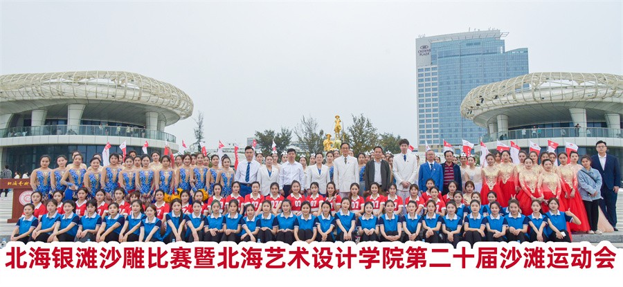 迎着北部湾灿烂的朝阳,4月8日 ,北海银滩沙雕比赛暨北海艺术设计学院沙滩运动会在北海市银滩公园举行。北海旅游集团有限公司副总经理李小军、学校党政领导、全校师生参加开幕式。