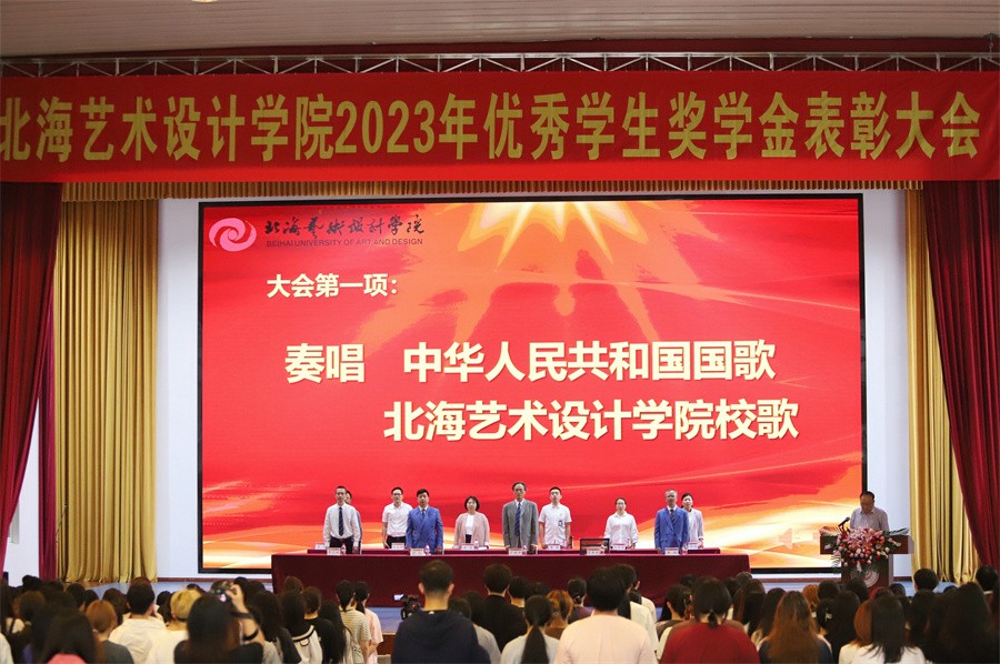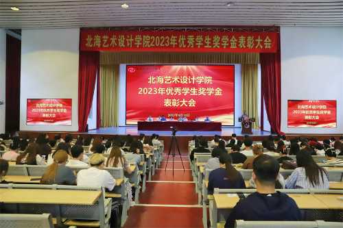 4月14日下午,我校于西校区大礼堂召开北海艺术设计学院2023年优秀学生奖学金表彰大会。校领导卢新华、彭仁、贺争平、王斌、黄侃明出席大会,各二级学院、各部门相关负责人和学生代表参加大会。大会由常务副校长贺争平主持。