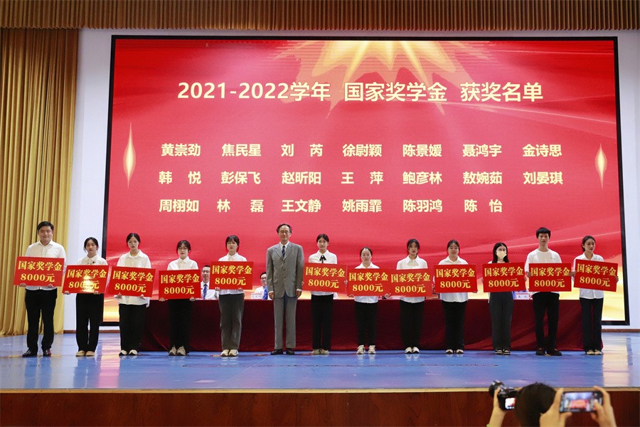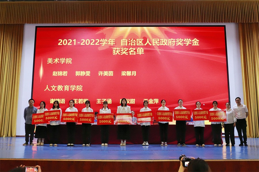 此次大会对“国家奖学金”“国家励志奖学金”“自治区人民政府奖学金”“学校优秀奖学金”的获奖者进行表彰,学校领导依次为获奖学生代表颁奖。