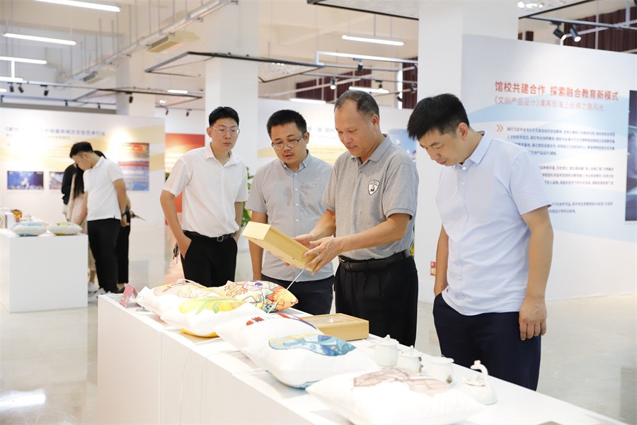 会前,党委副书记、副校长彭仁,美术学院副院长龚为陪同杨一笔书记一行先后参观了学校艺术楼、“本科教学综合改革成果展”“校政企行协同育人 服务地方经济发展”展厅和大师工作室、学生作品展、党建工作展板等,详细了解学校学科建设、师生作品创作、产学研融合、校企合作、教育教学成果转化等方面的情况。