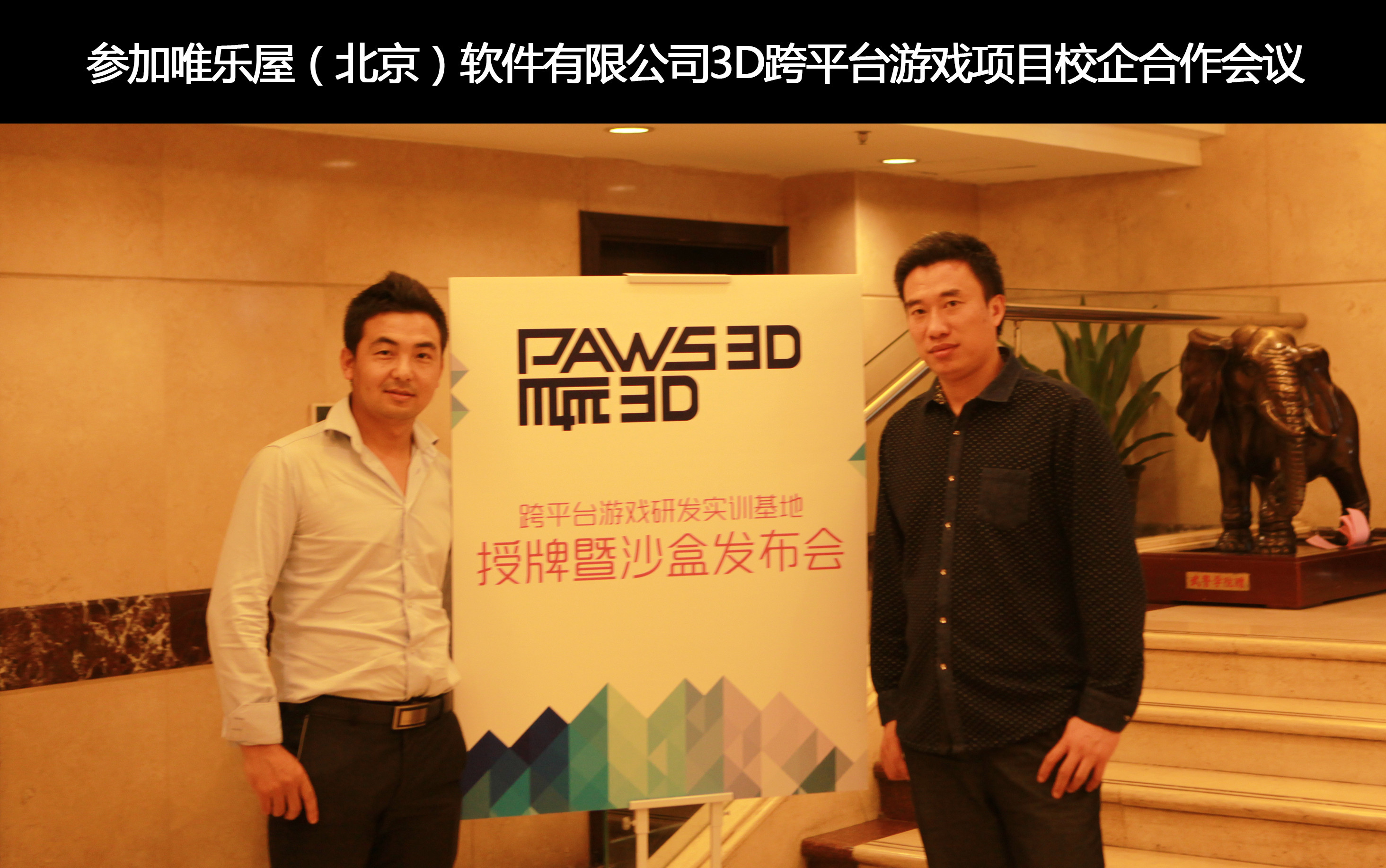 2015年4月23日,动画学院常务副院长陶立阳、实训实验室主任孙永辉老师受邀参加北京理工大学与唯乐屋(北京)软件有限公司主办PAWS3D3D跨平台游戏研发实训基地授牌暨沙盒发布会。并成功签署了“PAWS3D跨平台游戏项目校企战略合作协议”,同时获得了相应的实训基地运营授权,初步确定了双方合作建立PAWS3D跨平台游戏研发实训基地(PAWS3D跨平台游戏产品开发中心、PAWS3D跨平台游戏技能实训中心和PAWS3D跨平台游戏引擎核心技术实验室。Paws3D跨平台游戏开发沙盒作为国内首款,纯中文操作界面,商业化3D游戏开发工具,也是世界上第一个。