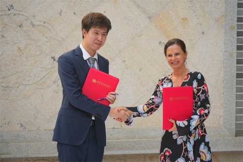 我校董事长郑念贻与匈牙利佩奇大学的工程与信息技术学院高比瑞拉博士作为双方代表签署合作协议