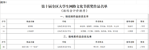 近日,自治区教育厅、自治区党委网信办公布了第十届全区大学生网络文化节和2024年全区高校网络教育优秀作品推选展示活动获奖名单,我校共有8项作品获奖,其中动画短片作品一等奖1项,二等奖1项;优秀新媒体作品一等奖1项,三等奖1项;微视频作品二等奖2项;微电影作品三等奖1项;音频作品三等奖1项。