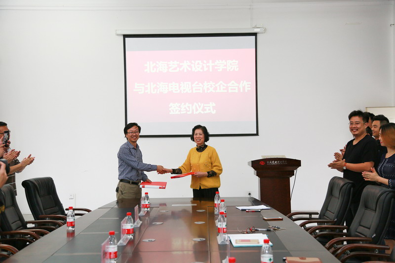 为了更好地为地方经济建设和社会发展服务,2017年1月7日下午16:00,北海艺术设计学院动画学院与北海电视台在学院东校区综合楼举行校企合作签约仪式。