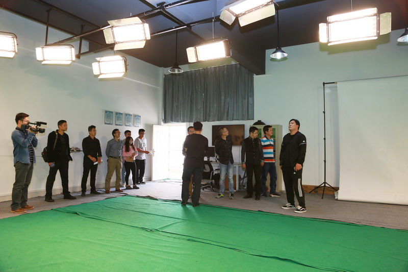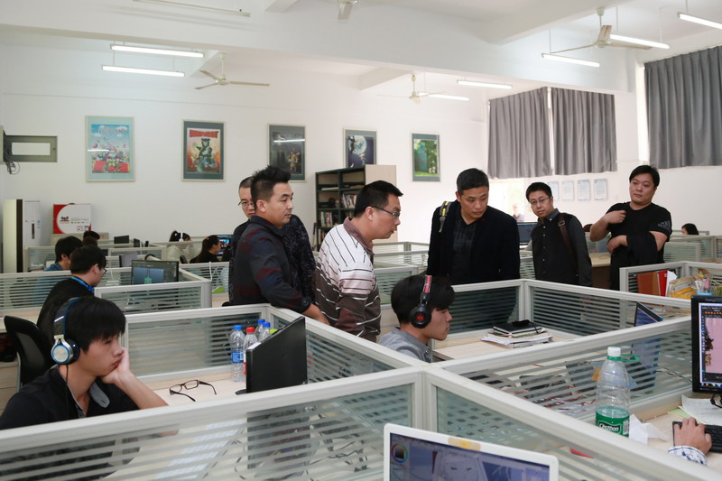动画实训室虞德强主任带领北海电视台领导参观了我院动画二维实训室、摄影实训室、表演室、配音室以及动画创意工作实训室。