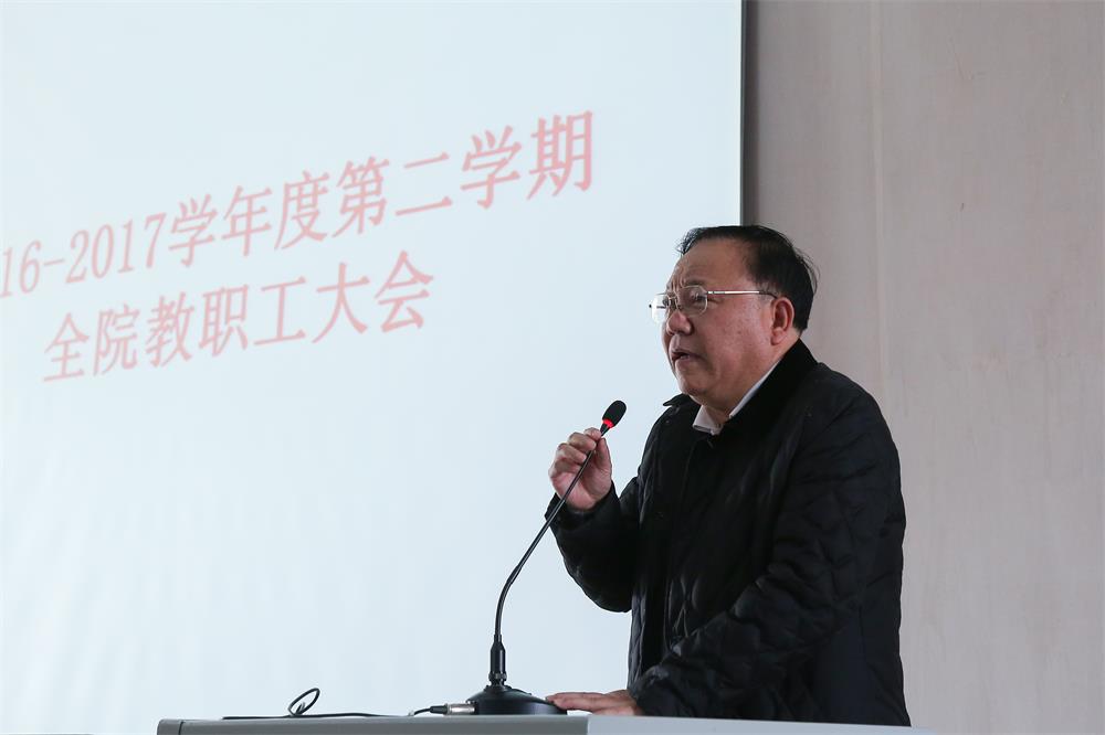 随后,党委书记贺争平对新学期的工作进行了全院动员。他指出,新的学期各位老师应充分认识到学院面临的形势,了解自身的责任,在工作上多点努力,少点抱怨。同时,学院还要加强贯彻思想政治工作、师德建设,提高高校教师的能力。另外,贺争平书记对“两学一做”学习教育提出了要求。要把“两学一做”与学院评估工作结合起来,全体党员要认真履行职责,发挥模范带头作用,为学院发展作贡献。