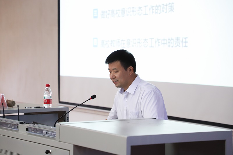 陈立生主任作了《学习习近平总书记关于意识形态工作的重要论述》专题报告。他剖析了意识形态的时代背景、当前国家意识形态工作的形势以及习近平总书记关于意识形态工作的新思想、新理念、新要求,深刻抨击了历史虚无主义的弊端和危害。作为高校教师,要坚定思想信念,坚决反击历史虚无主义,自觉担当国家主流意识形态阵地的守护者。