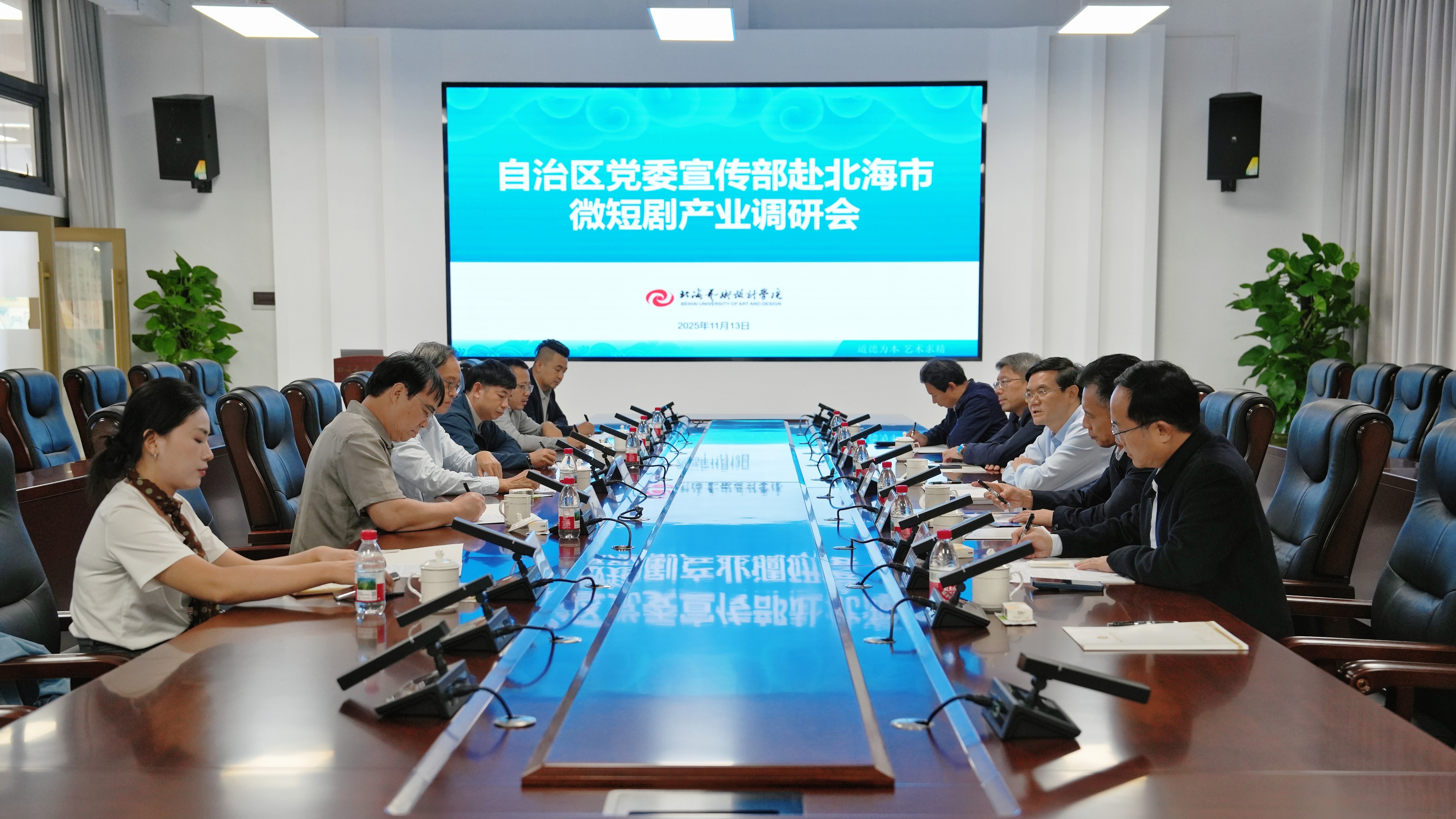 11月13日,自治区党委宣传部副部长(兼),广电局党组书记、局长满昌学和自治区广电局党组成员、副局长陆正宁率调研组到我校开展微短剧产业发展工作调研,考察微短剧、影艺学教研产等情况。北海市委常委、宣传部部长郑定雄,北海市旅游文体局党组书记、局长、一级调研员李才能,北海市旅游文体局党组成员、副局长(市广播电视局局长)、二级调研员陈言启参加调研。我校校长卢新华、党委副书记彭仁、副校长包建明等人陪同调研。