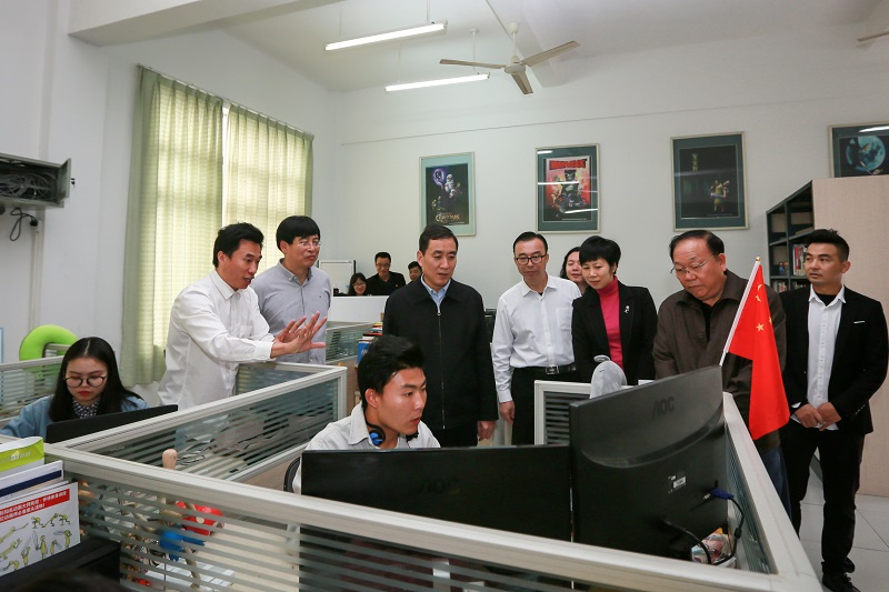 在我院领导陪同下,市纪委书记缪佃江一行领导参观了西校区校园环境、图书馆等学校基础建设,市纪委书记缪佃江对我院建设规划与校园文化环境表示高度赞扬。随后视察了东校区动画学院实训室,并观看了我院动画工作室制作的宣传片,获得了领导一行的认可与好评。