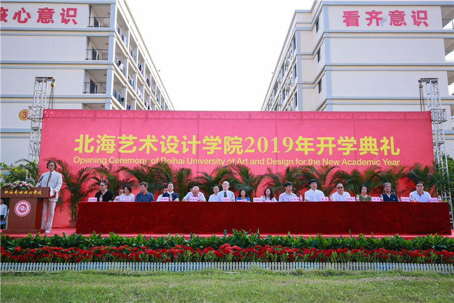 北海市教育局党组书记、局长叶宗沛,北海市高教办主任包建明,英国德比大学艺术学院院长David 先生,中国舞蹈家协会教学学会理事、北京市舞蹈家协会理事、一级演员、舞蹈表演专业学科带头人、我校特聘教授任家和教授,一级编导、北京舞蹈学院编导系教授、硕士生导师、舞蹈表演专业学科带头人、我校特聘教授吴明奇教授等领导嘉宾受邀出席开学典礼。我校学校党委书记李高南、校长卢新华、名誉校长王国伦、常务副校长贺争平、学校执行董事兼副校长张建虹、学校董事兼副校长张跃、副校长黄艳芳、副校长胡胜、副校长王斌、党委副书记兼副校长彭仁、副校长邱杰等学校领导以及全体师生参加了典礼。典礼由学校党委书记李高南主持。