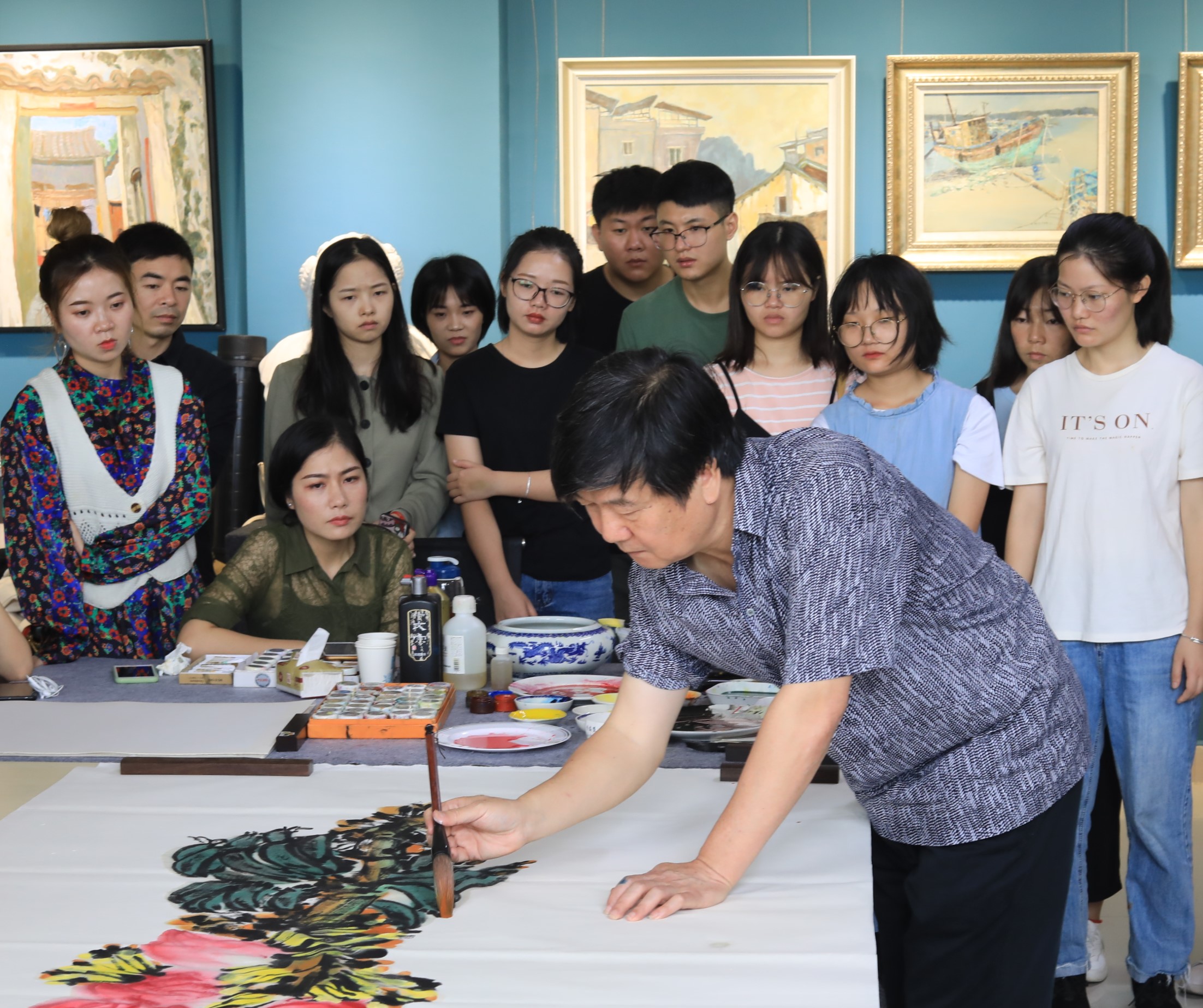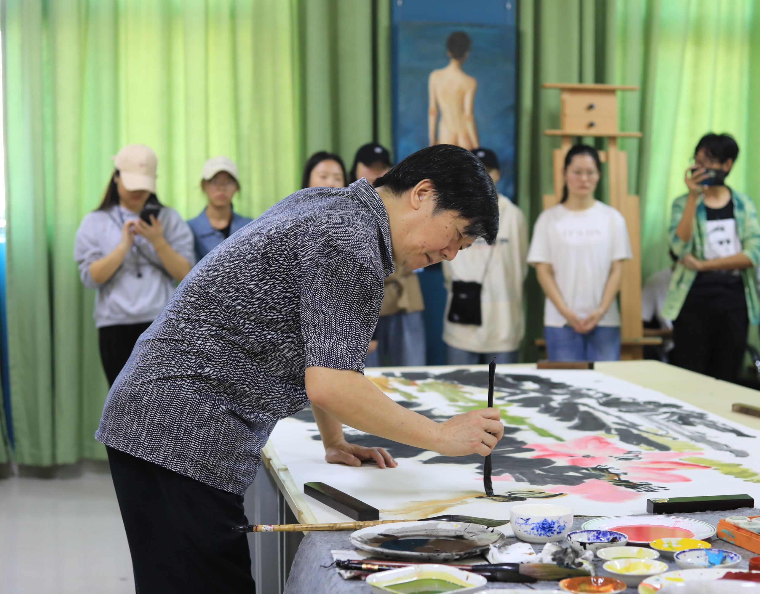 随后,蔡教授开始进行范画创作,并对创作过程进行了深入浅出的讲解。