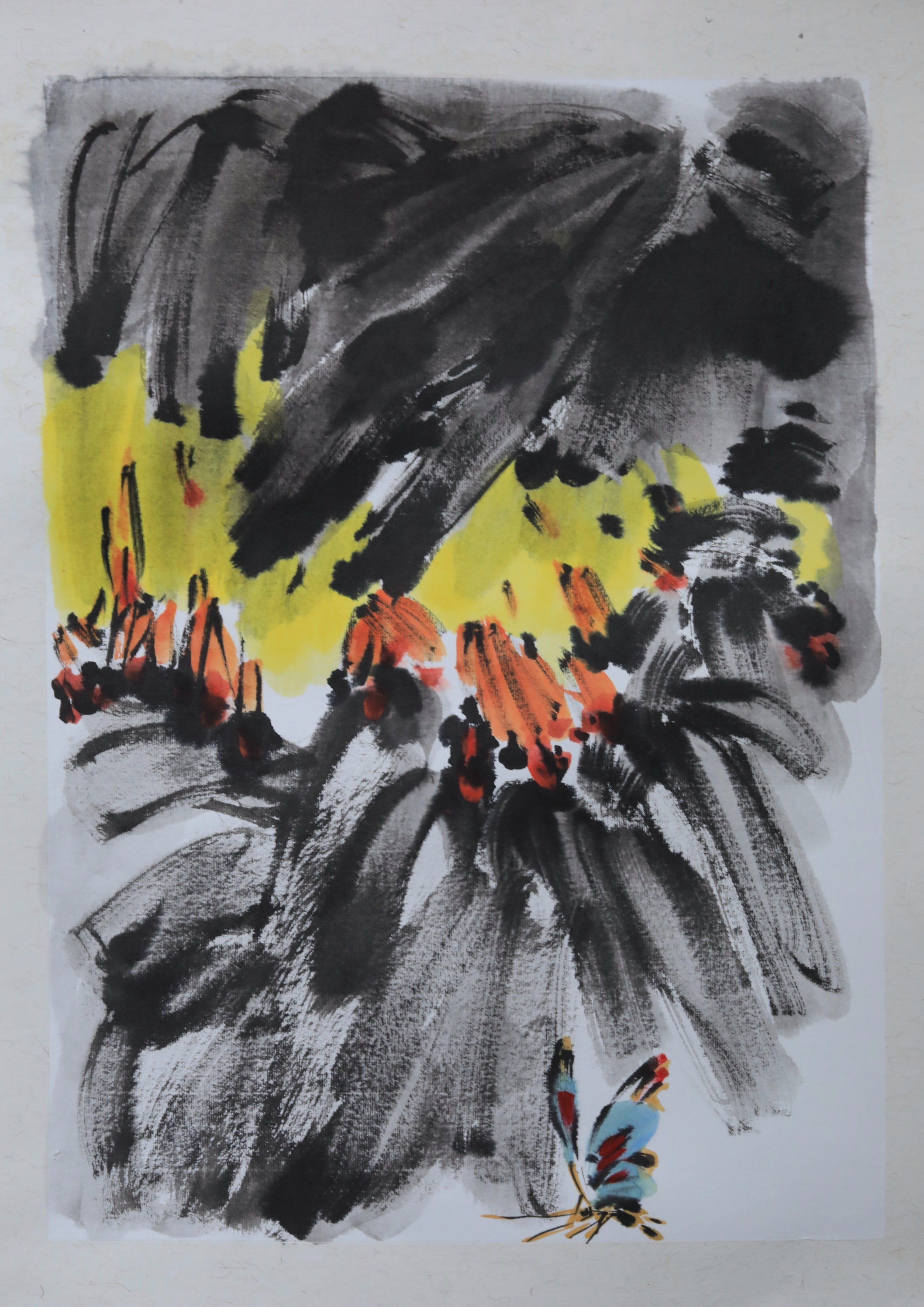 第二步:将笔墨着力于芭蕉花的细致刻画,尊重绘画对象,注重处理好画面的笔墨关系,尤其是虚实关系和色彩墨色的和谐统一。
