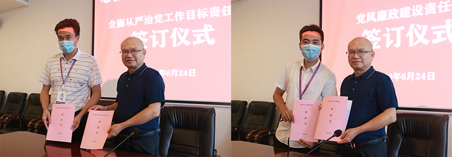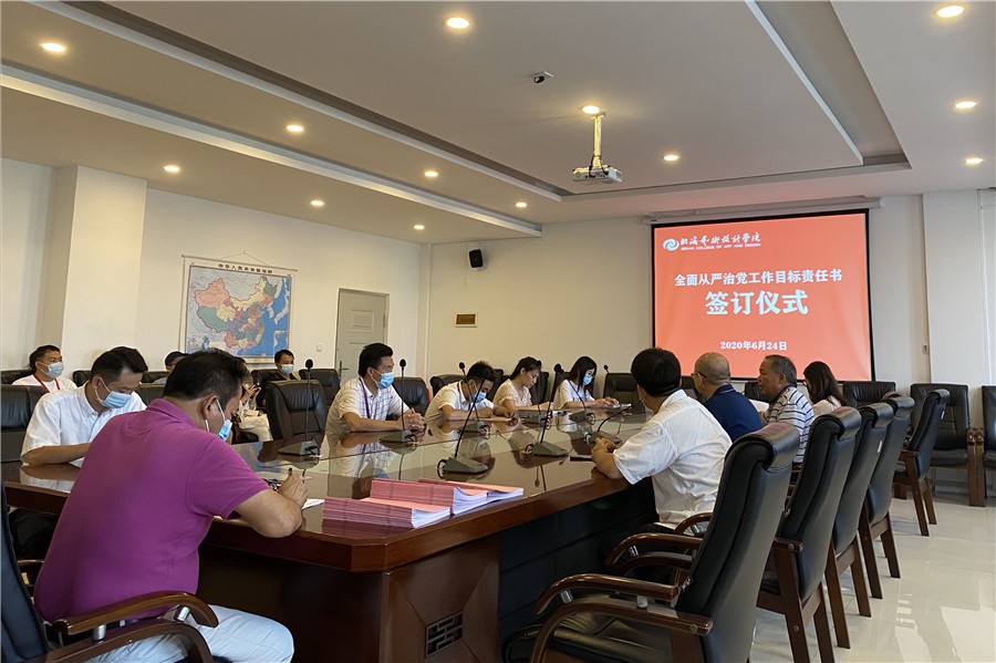 会议首先进行《北海艺术设计学院落实全面从严治党工作目标责任书》等相关责任书的签订仪式。校党委书记李高南与各二级学院党总支、各直属党支部签订了相关责任书。
