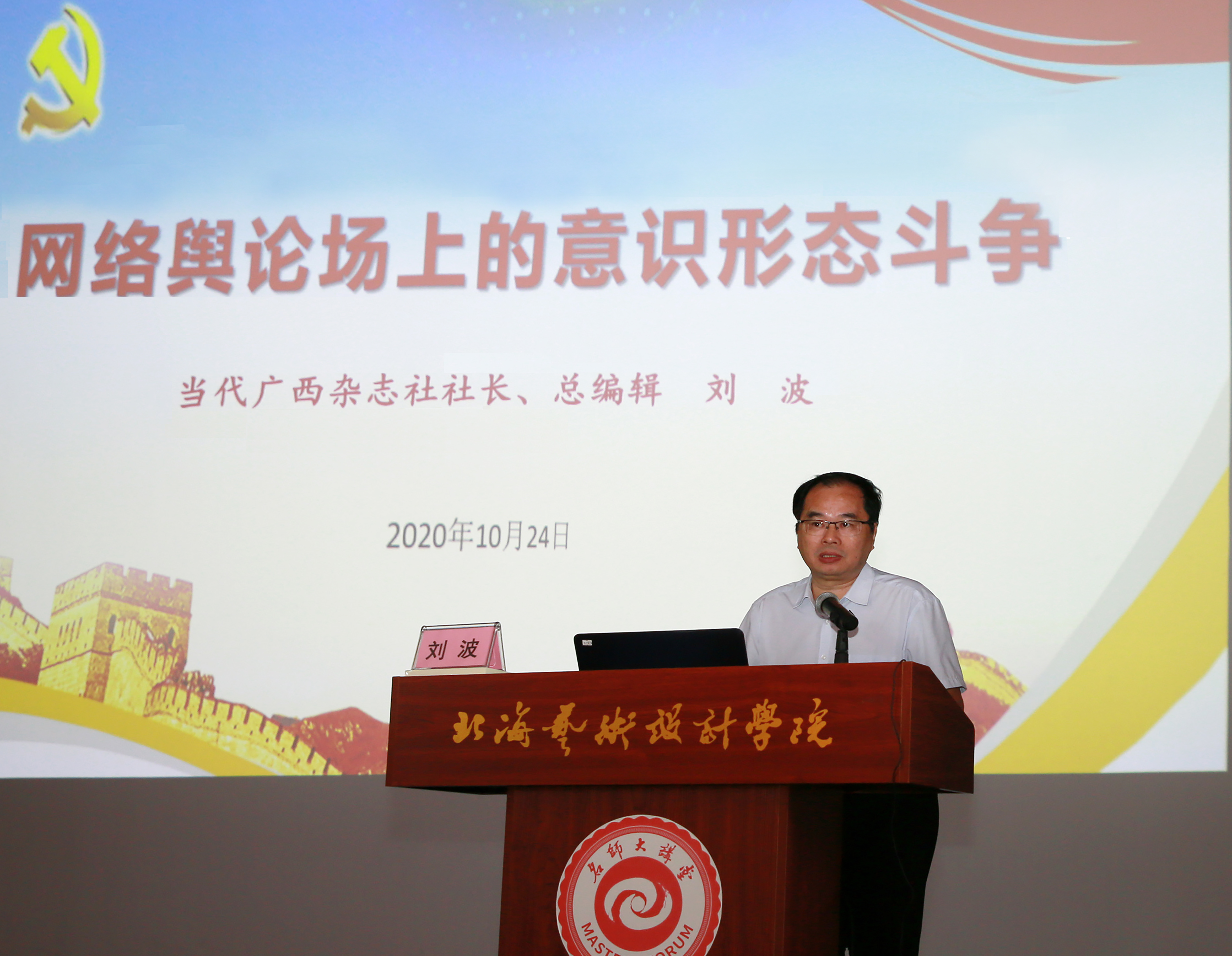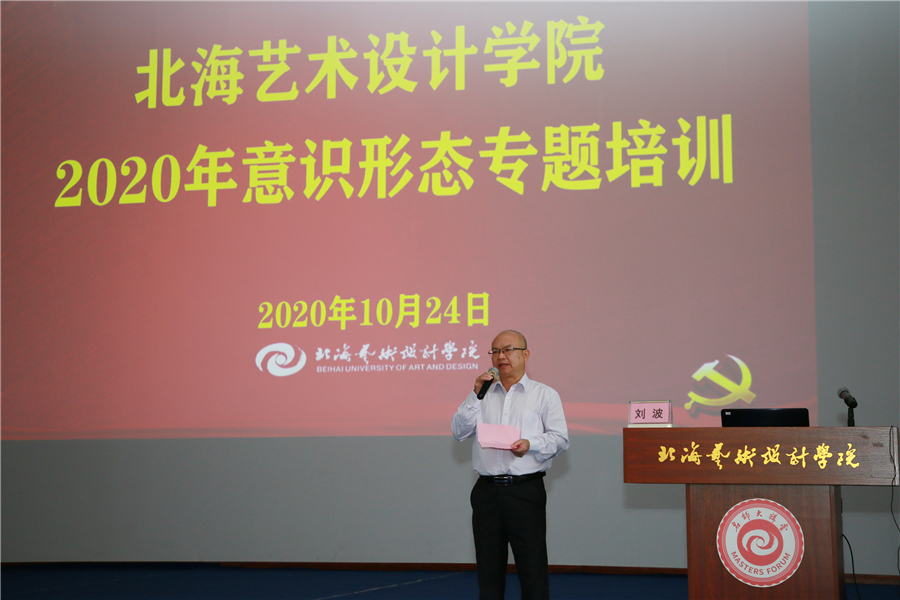 10月24日上午,我校于西区大礼堂举办2020年意识形态专题培训,邀请当代广西杂志社社长、总编辑刘波为全体教师及行政管理人员进行培训。