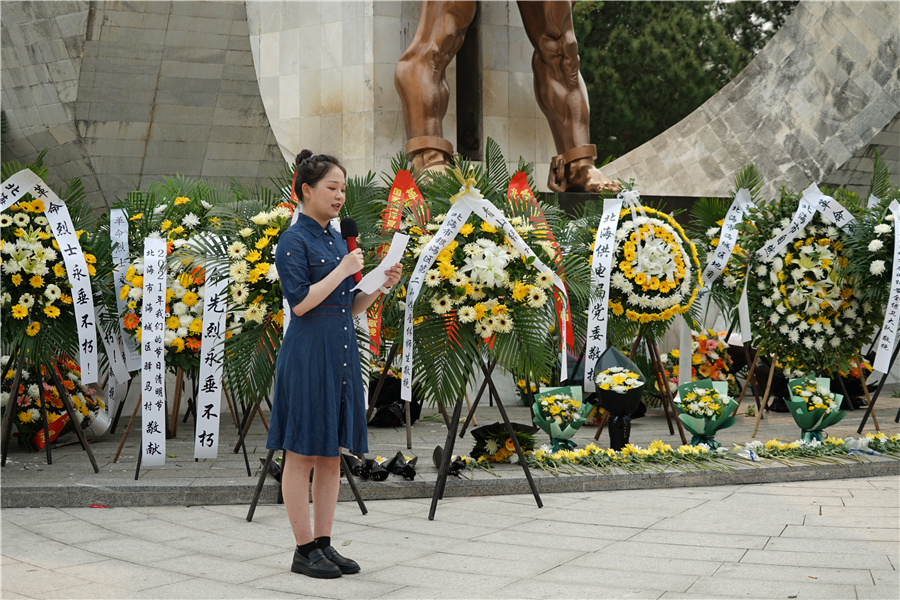 随后全体师生代表默哀一分钟,团员代表向烈士敬献花篮、师生代表向烈士敬献鲜花,表达了对烈士的缅怀和敬意。