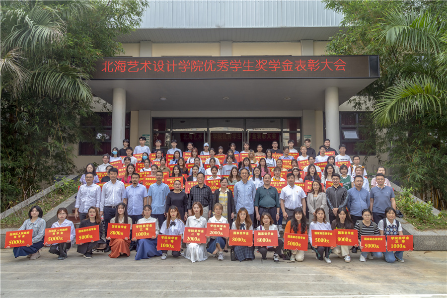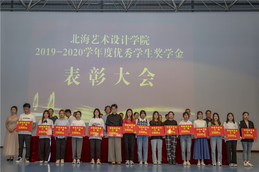 大会在雄壮的国歌声中拉开序幕,党委书记张阳宣读了表彰决定。与会领导依次为获得国家奖学金、国家励志奖学金、自治区人民政府奖学金、北海艺术设计学院优秀学生奖学金获得者颁奖。