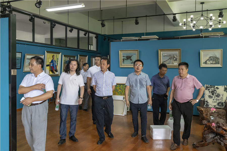 考察组首先参观了我校在图书馆一楼展厅举办的环艺学院2017级学生毕业作品展、设计学院视觉传达和产品设计学生工作室和图书馆三楼的党史学习教育学习角,表示充分肯定,考察组成员永福县政协党组副书记、副主席黄泽治对我校学生作品能够与时代主体接轨提出高度评价。