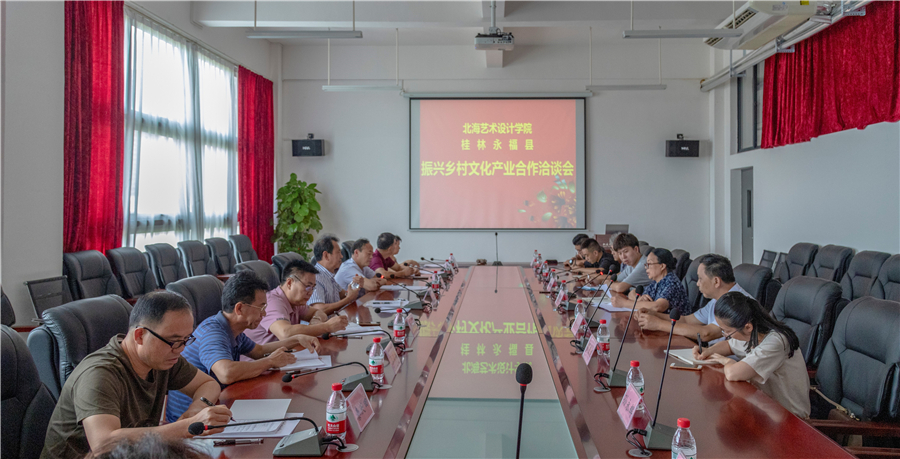 下午3点30分,桂林永福县考察调研组在我校图书馆五楼会议室就下一步我校与振兴乡村文化产业合作的主题展开洽谈会,我校执行董事兼副校长张建虹、校长助理郑念贻、以及各二级学院分管教学副院长参加本次会议。