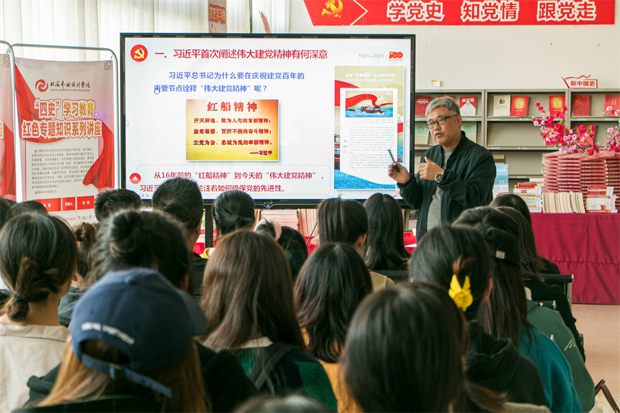 讲座以共产党的苦难诞生、伟大的共产党人为革命事业浴血奋战、新中国的昌明盛世为切入点,分析习近平总书记在庆祝建党百年的重要节点上诠释伟大建党精神的深意,从坚守理想、践行初心、担当使命、不怕牺牲等不同维度解读了伟大建党精神的深刻内涵,阐明了伟大建党精神是中国共