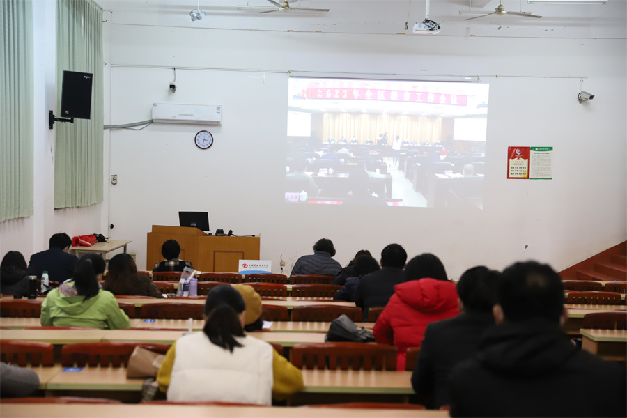 2月16日下午,自治区党委教育工作领导小组办公室、自治区党委教育工委、自治区教育厅召开2022年全区教育工作视频会议,全面总结我区2021年教育工作,深入分析教育发展形势,研究部署2022年教育重点工作。自治区党委教育工委书记,自治区教育厅党组书记、厅长刘友谊出席会议并讲话。会议由自治区教育厅党组成员、副厅长李清先主持。我校在东校区视频会议室设立分会场,学校党政领导及各单位、各部门负责人参加会议。