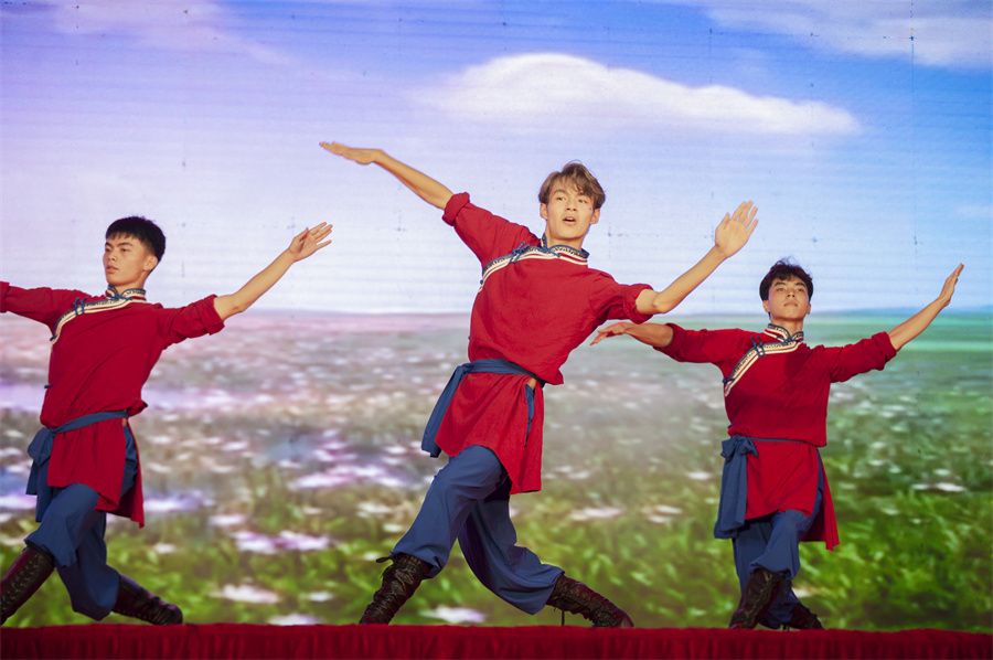 青春在自然宁静的辽阔草原绽放,英姿飒爽的民族舞使人眼前焕然一新,同学们展现的民族舞豪迈风情,瞬间聚焦全场眼球。