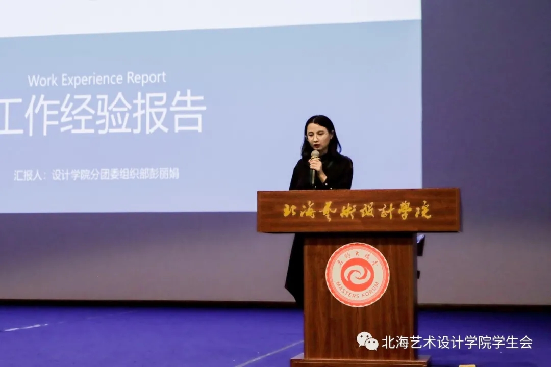 大会第六项,学生代表发言及设计学院组织部代表分享工作经验。