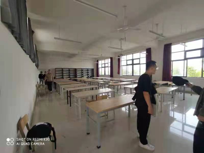 “四,六级考试考场布置”活动。在开考之前将教室卫生打扫干净,要求:配齐桌椅数,桌面、黑板、地面要清洁,书籍带走,桌椅尽可能拉开距离,将课桌全部反转,前门入门处放置四张课桌,用来存放考生物品。多余的课桌放在教室后面并排放整齐,不要锁门。监考老师将在开考一小时前到各考场贴考号并封考场,设置警戒线。对整理不符合要求的教室,将要求重新整理。整理结束后请同学们远离警戒区域,更不可随便擅自进入考场。