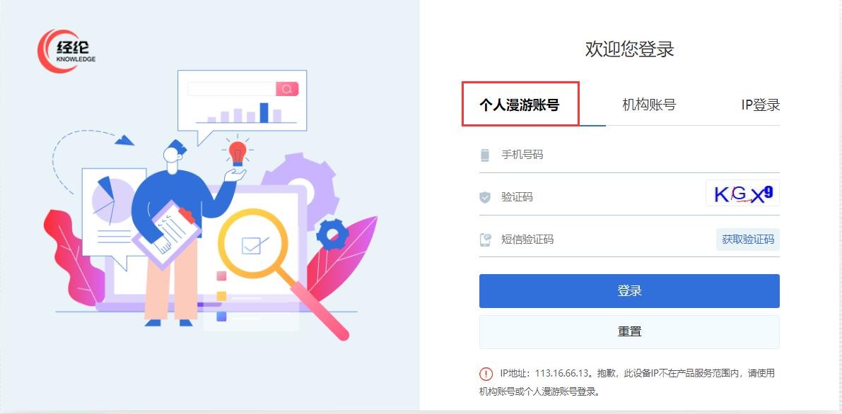 1.因校园网外打开经纶平台网址:http://k.vipslib.com/,无法自动识别登录,如您已注册过个人账号,请使用个人漫游账号登录,如为注册过请选择机构账号登录,并输入学校机构账号:bhyssjxy,密码:bhyssjxy2022,即可登录,登入过后右上角会显示学校名称。
