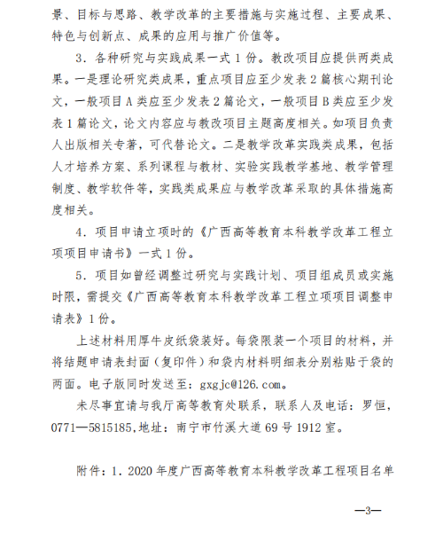 自治区教育厅关于申报2020年度 广西高等教育本科教学改革工程项目的通知