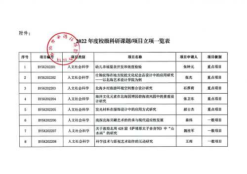 北艺科研〔2022〕15号 关于2022年度校级科研课题/项目立项评审结果的通知