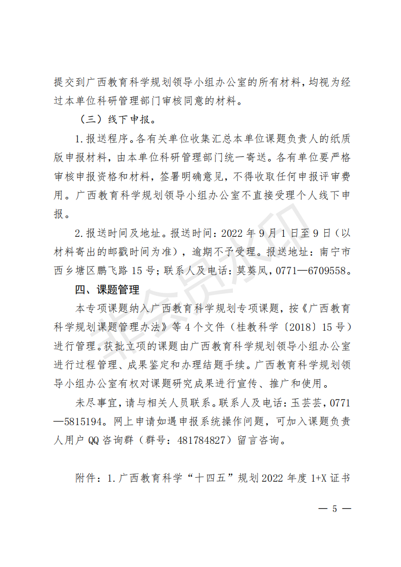 广西教育科学规划领导小组关于组织开展广西教育科学“十四五”规划2022年度1 X证书制度试点建设研究专项课题申报工作的通知_