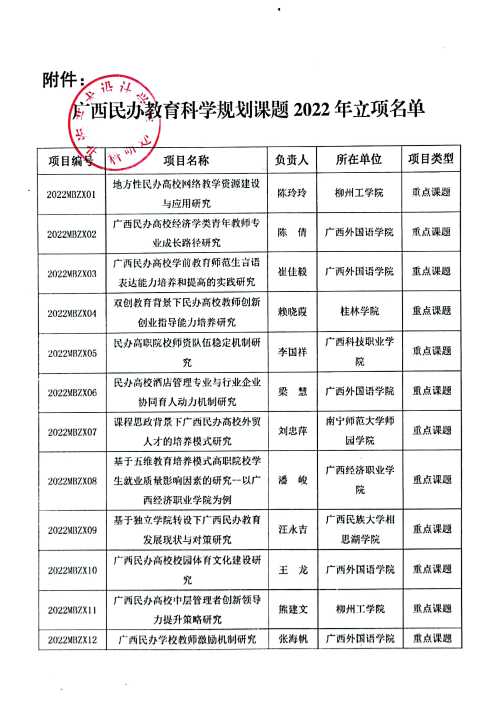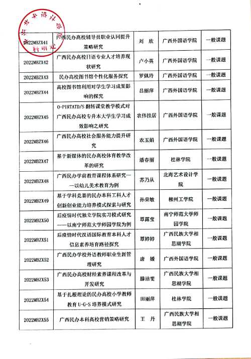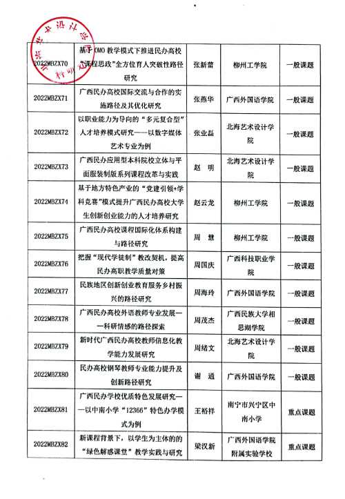 桂民教协[2022]10号关于公布2022年广西民办教育科学规划课题立项名单通知