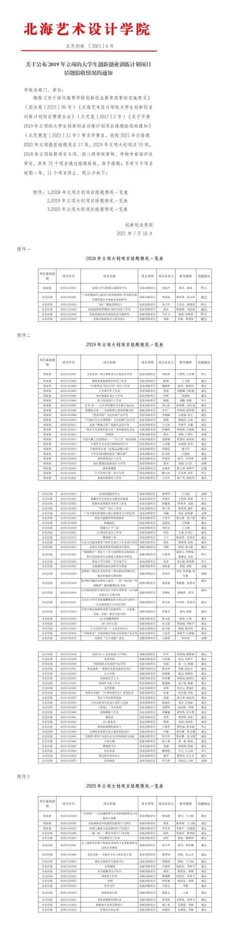 北艺创新〔2021〕6号关于公布2019年立项的大学生创新创业训练计划项目结题验收情况的通知