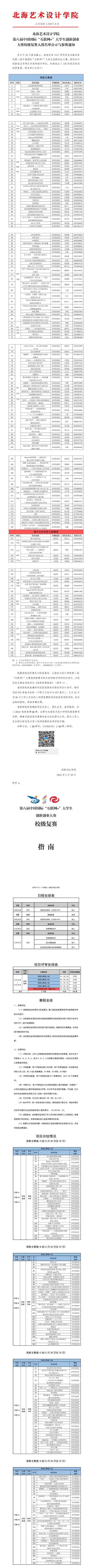 北艺创新〔2022〕8号北海艺术设计学院第八届“互联网+”大赛校级复赛入围名单公示与参赛通知