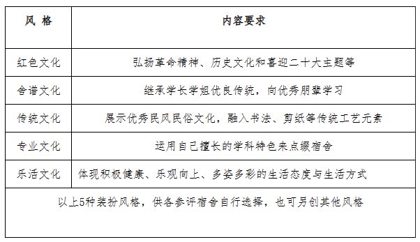 (2)寝室风格设计:各参赛寝室须确定自己寝室的风格