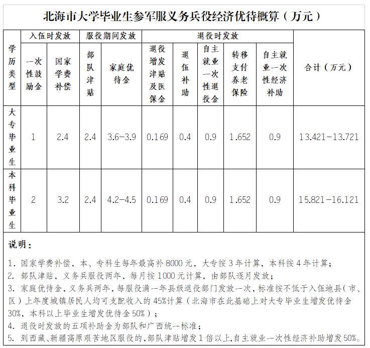 特别提醒:以上优待政策仅限从北海市各县区入伍才能享受