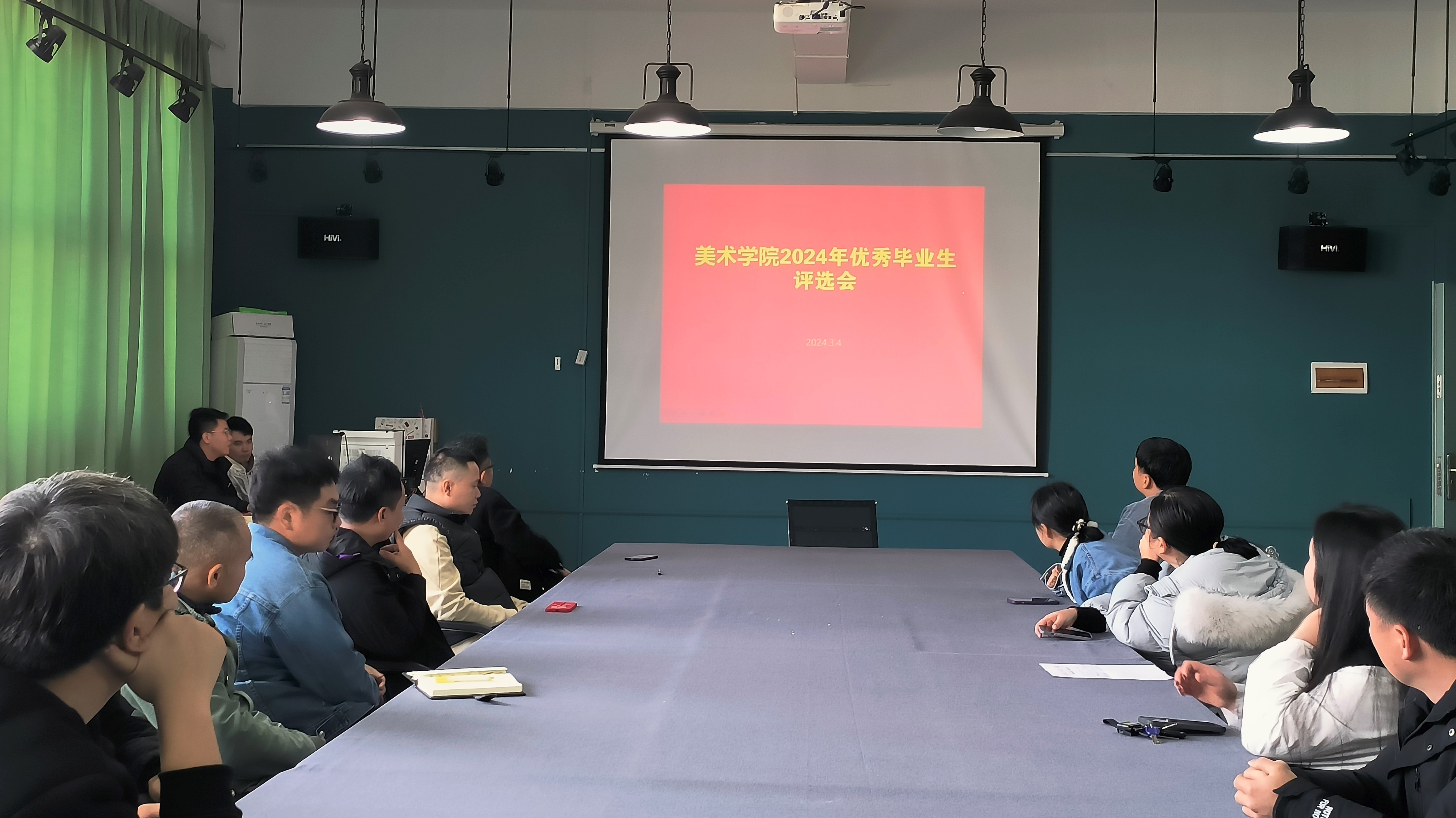 202434日,美术学院于艺术楼314召开2024年优秀毕业生评选会,第五党总支书记韩玮、美术学院常务副院长龚为、第五党总支副书记鲁明阳、副院长肖玺、美院各部门主任及20级班级辅导员参加会议,会议由学工办主任林昌华主持。