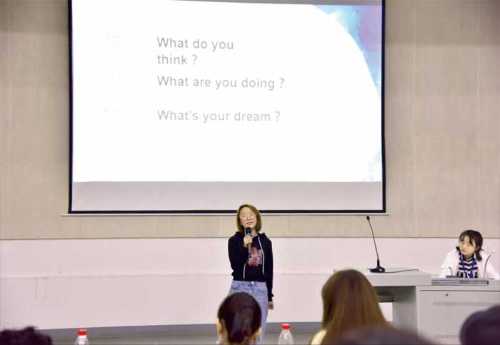 学习交流会开始,由服装与服饰设计系16级6班谭晶同学分享。她说进入大学,同学们应有良好的心态,一定要对自己有足够的信心,并在学习好本专业时也要注重英语的学习,与志同道合的朋友和家人保持联系。