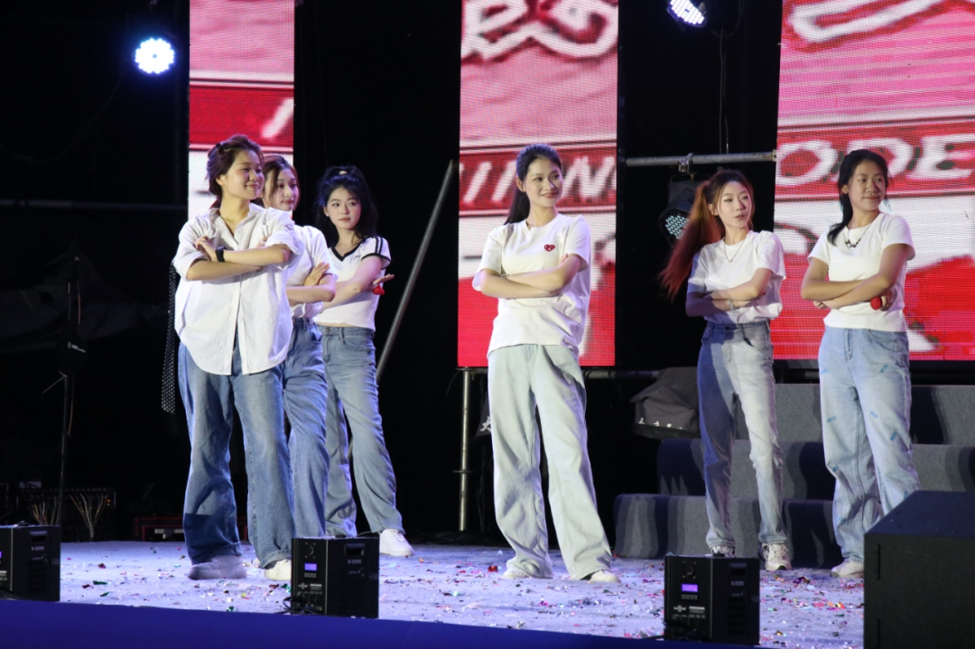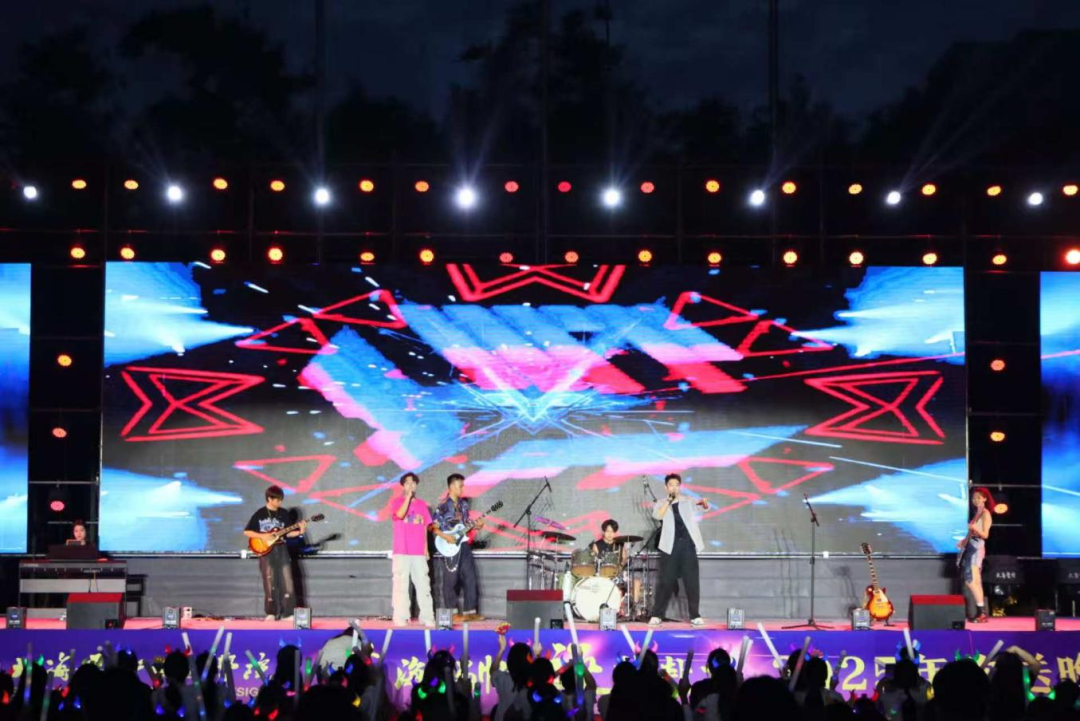 晚会伊始,沙蟹汁乐队用热情奔放的《阳光宅男》、《我相信》瞬间点燃全场气氛。强烈的节奏、激昂的旋律,让现场观众的目光瞬间聚焦舞台。学子们随着音乐不由自主地舞动,热烈的氛围迅速蔓延,为整场晚会奠定了欢快的基调。