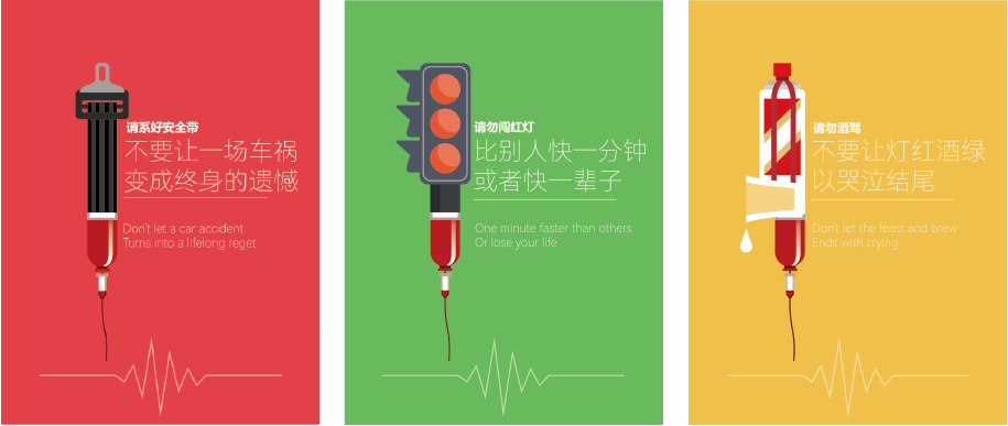 海报类:优秀奖  《交通安全系列作品-安全驾驶,勿酒驾,勿行车看手机》