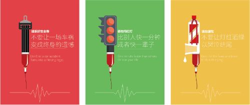 海报类:优秀奖 《交通安全系列作品-勿闯红灯,戴好头盔,请勿超载》