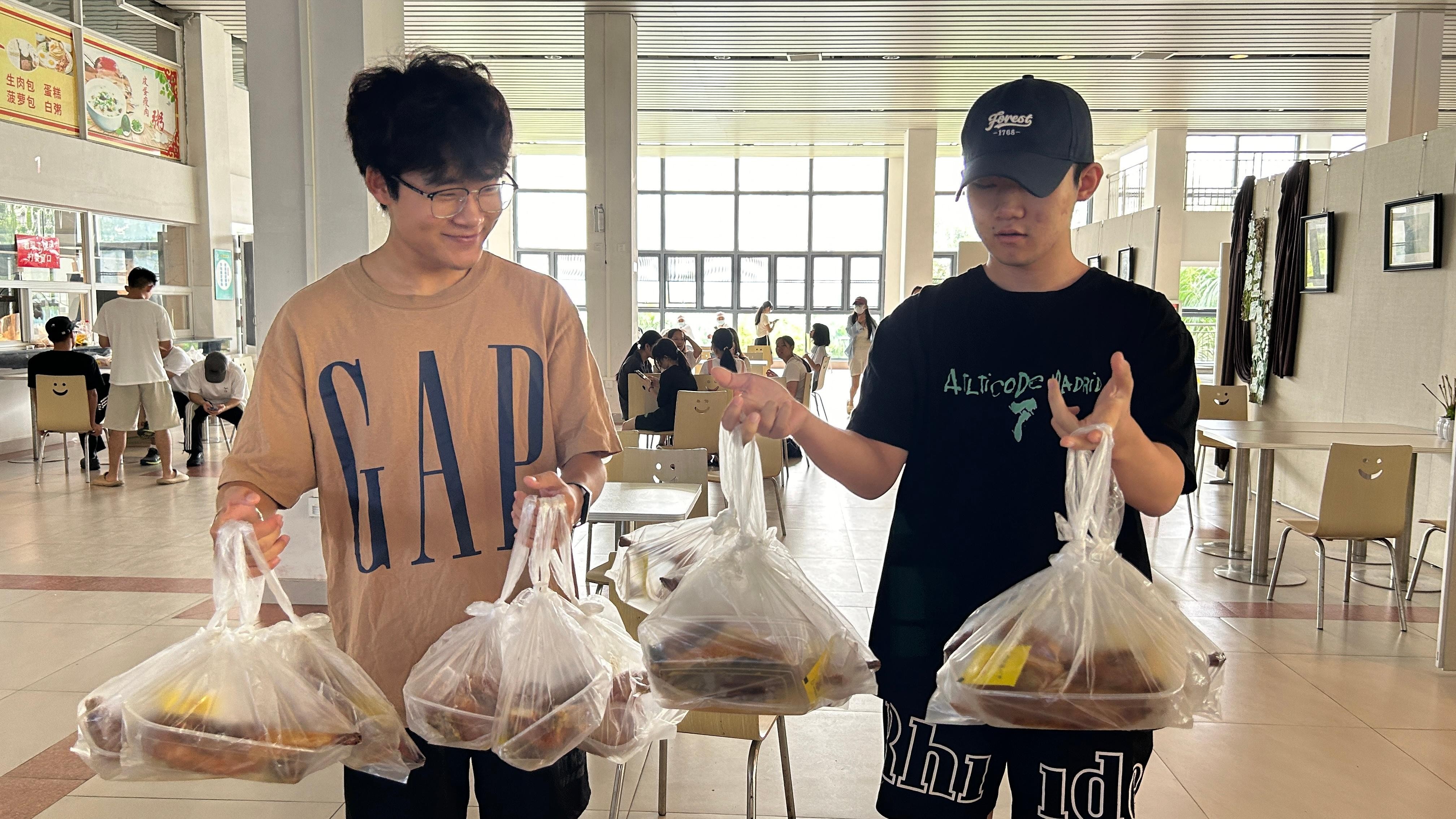 书法学院学工办教师全程组织本次活动,一只只新鲜出炉的烧鸡干净整齐地摆放在学校食堂发放台,散发着无比诱人的香气,每位学生在领取队伍中都绽放出开心的笑容。我校以实际行动传递了对每一位学子的关爱,让每一位离家甚远的学生都能感受到家的温暖。