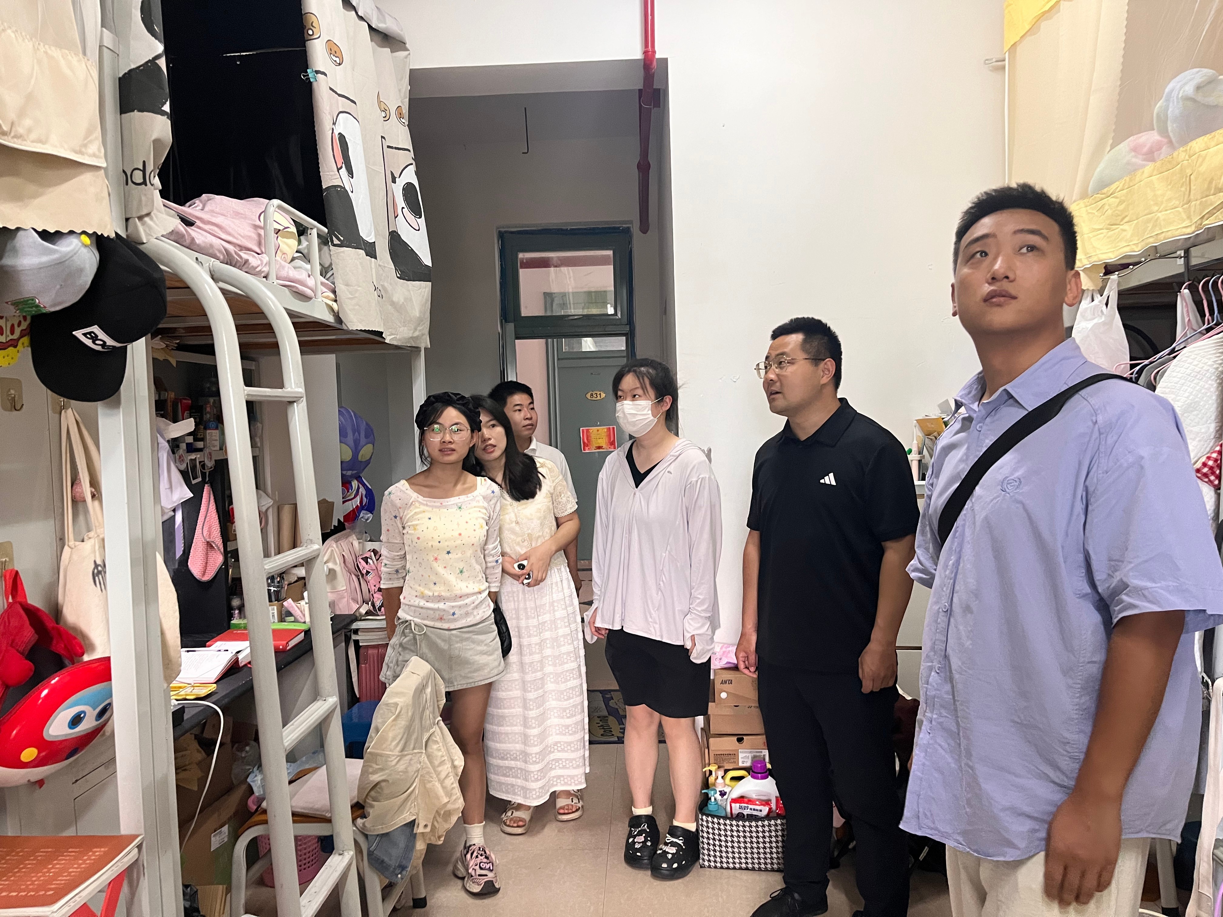 为加强寝室管理,增进师生感情,6月6日,书法学院院党委副书记左云飞及学工办主任李家琪带领全体辅导员前往学生寝室,开展走访慰问和安全检查工作,为同学们送去关怀与温暖。