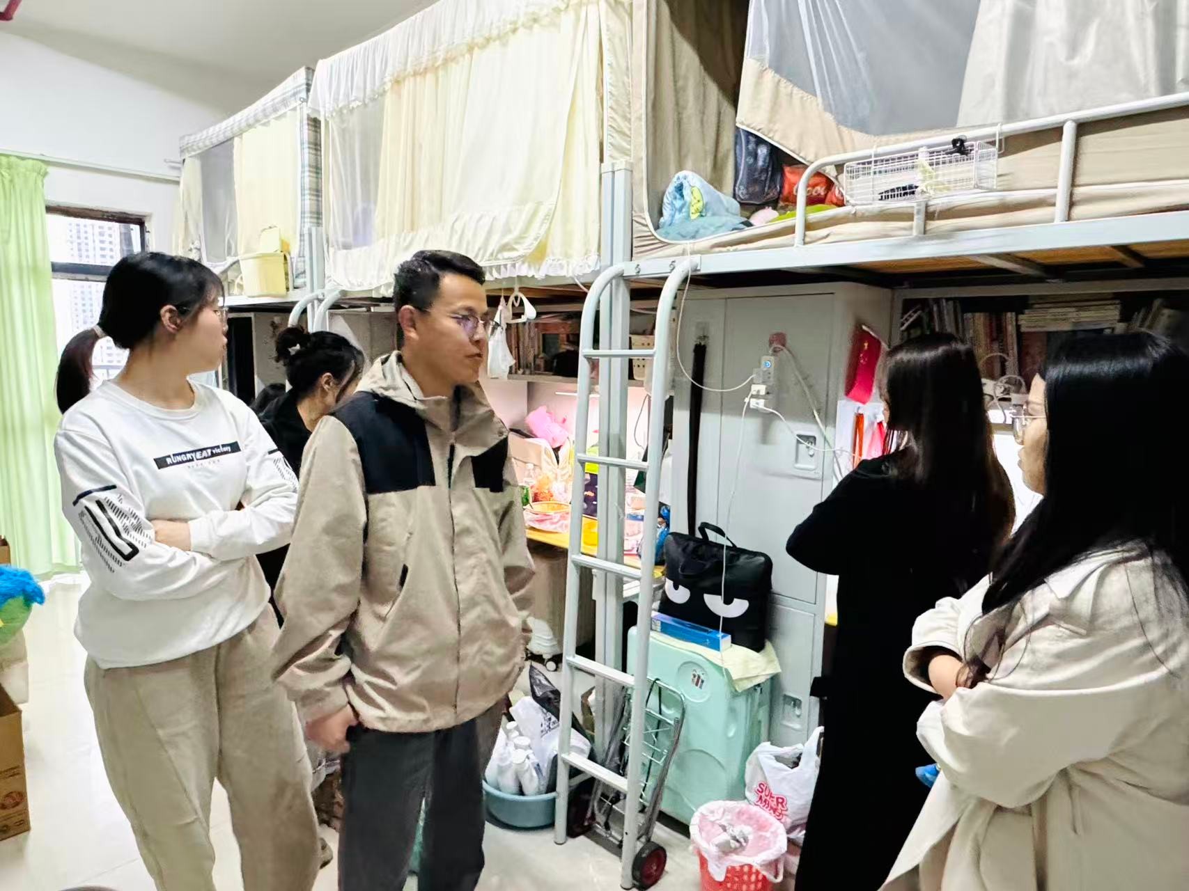 为深入了解学院学生的住宿生活与学习状态,精准掌握学生成长需求,12月5日,服装学院党支部书记曹永攀带领学工教师团队,深入学生宿舍开展走访慰问活动。