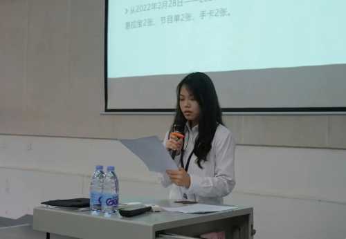 学生会主席团成员石冰杨睿代表学生会各个部门汇报相关工作,并对其做出了补充,以及提出了相关意见。表示在未来活动中,将积极创新,希望在以后的活动中以更创新的活动形式,吸引广大师生参与,丰富活动,使活动更加精彩。