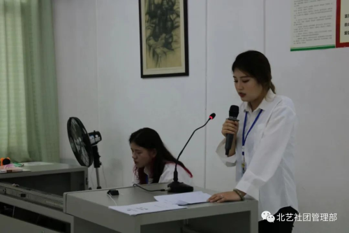 例会第三项——文艺部部长何苗苗强调社团换届注意事项。