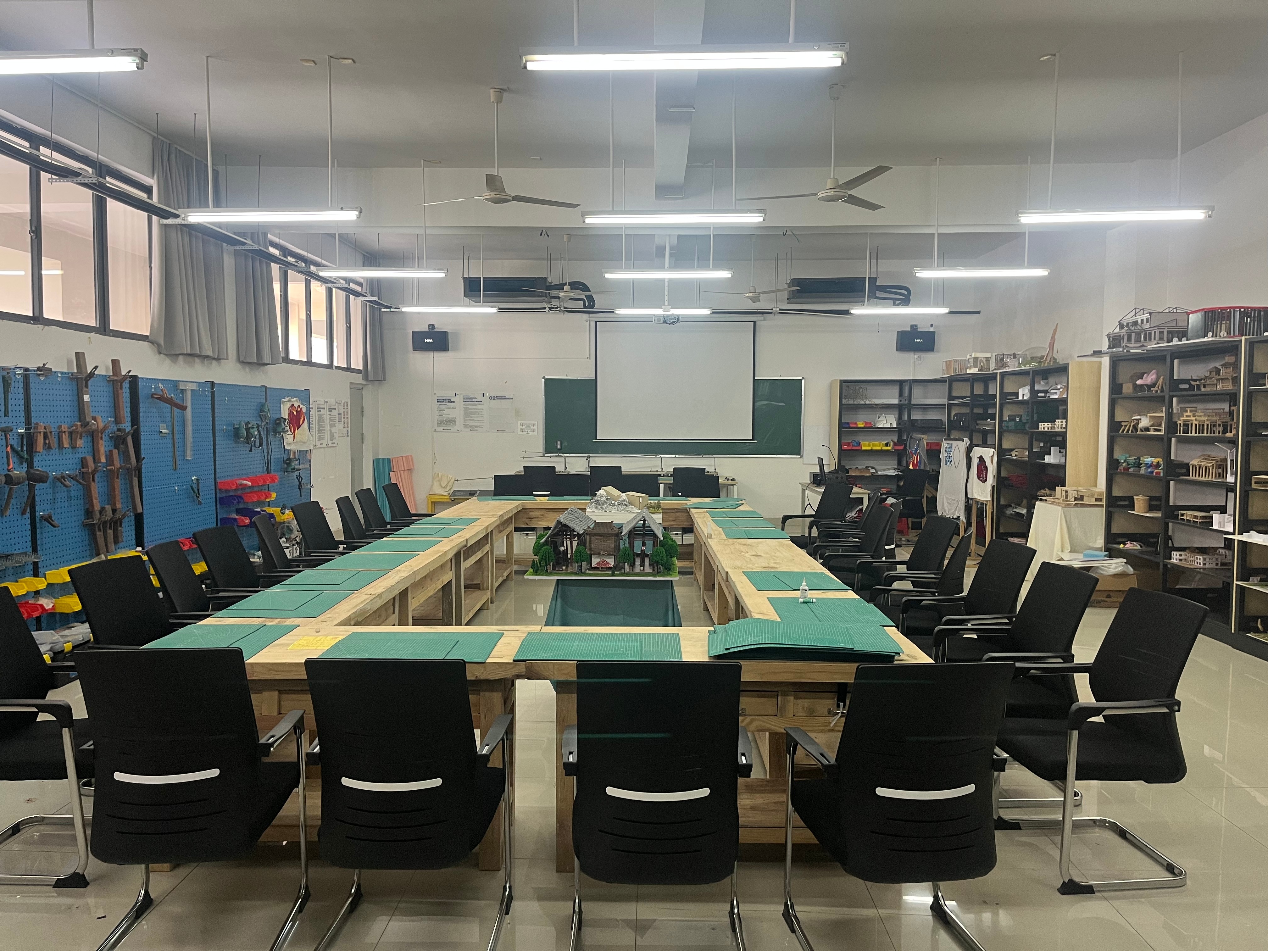 该实验室是环境设计专业实验教学的主要场所,本实验室主要用于承担本专业的实验项目有展示空间模型制作、陈设设计模型制作、家具模型制作、景观模型制作等。