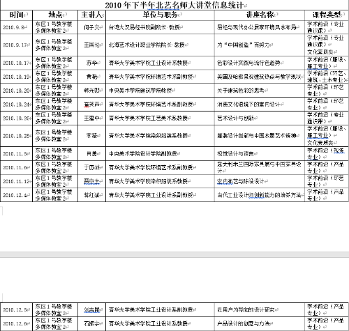 2010年下半年北艺名师大讲堂信息统计